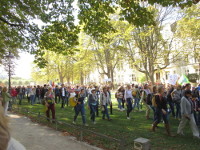 Bei strahlendem Sonnenschein gingen mehr als 500 Menschen -Für ein friedliches, atomwaffenfreies und solidarisches Europa!- auf die Straße.